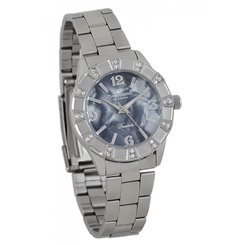 Damski zegarek na stalowej bransolecie z ogniw. Koperta okrągła wysadzana cyrkoniami. Kolekcja o nazwie Diamonds.