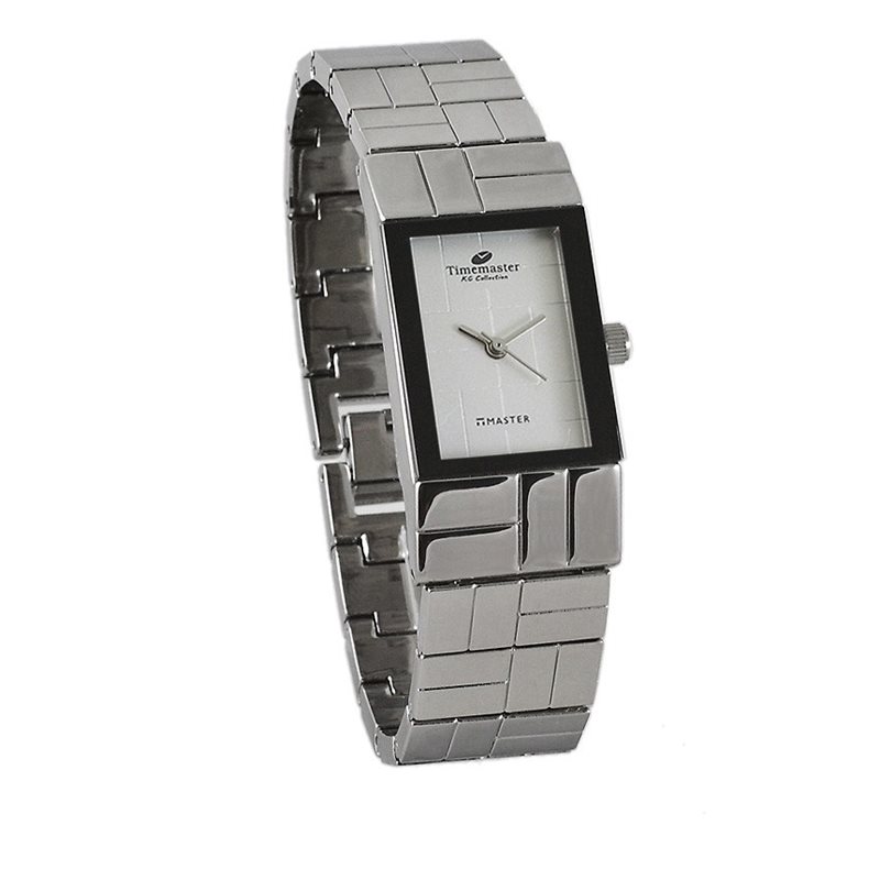 Damski zegarek Timemaster na bransoletce. Prostokątna koperta zegarka wygląda jakby tworzyła jedną całość z bransoletą.