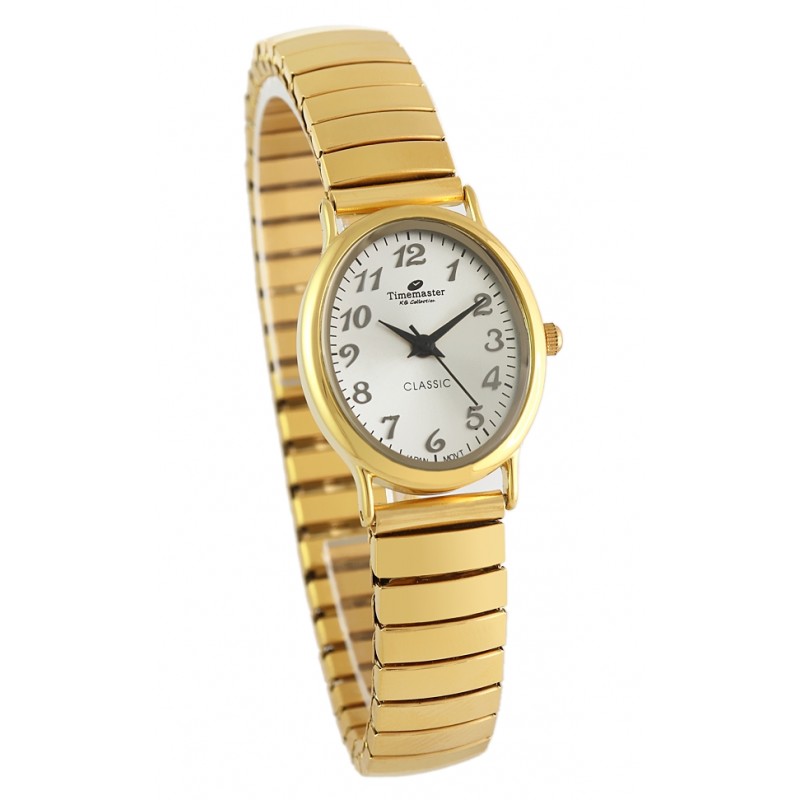 Damski zegarek w owalnej kopercie. Czytelna tarcza z wypukłymi cyframi w stylu retro. W tym modelu zastosowano rozciąganą bransoletę typu stretch, nie wymaga ona regulacji ani zapinania.