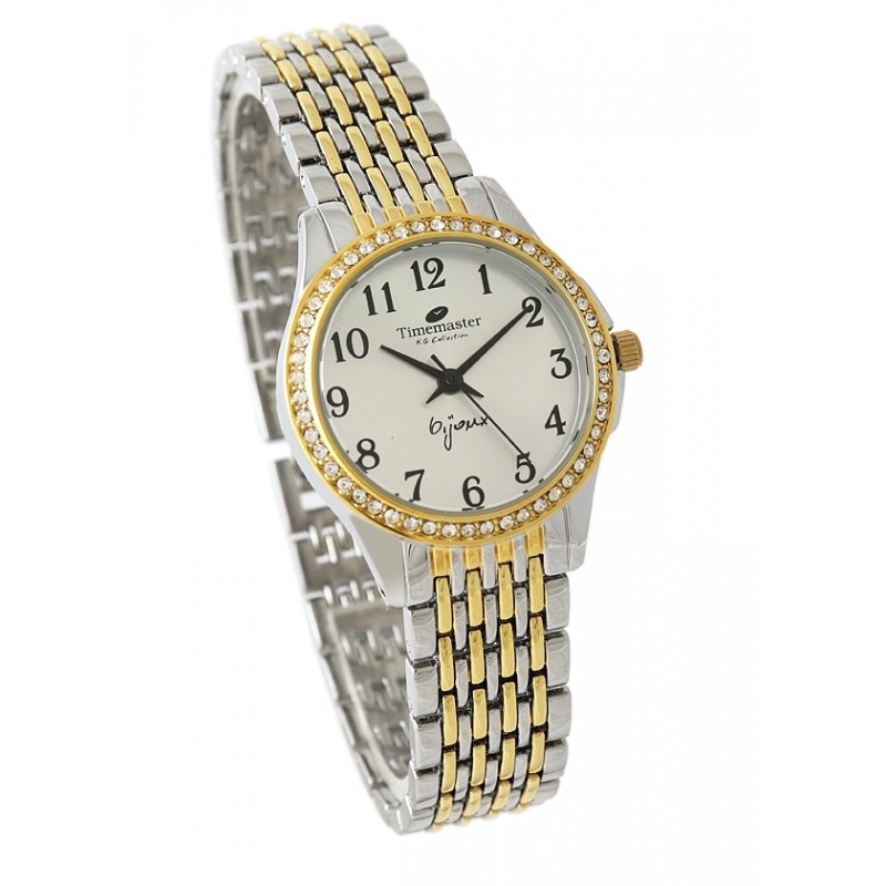 Biżuteryjny, bardzo ozdobny zegarek na bransolecie składającej się z ogniw umożliwiających skracanie. Wyraźne, czarne indeksy nadają niezwykłego uroku.