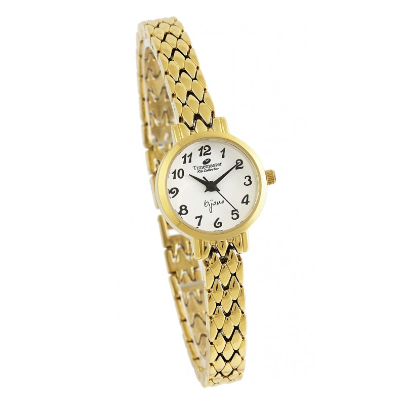Biżuteryjny, bardzo ozdobny zegarek na bransolecie składającej się z ogniw umożliwiających skracanie. Wyraźne, czarne indeksy nadają niezwykłego uroku.