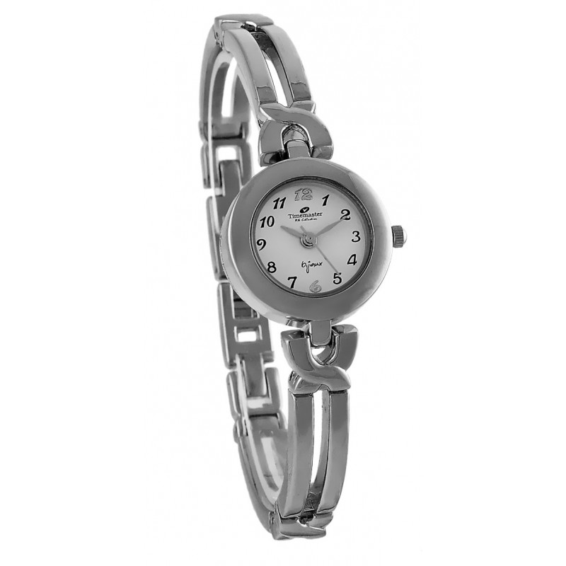 Biżuteryjny zegarek na bransoletce z ogniw, którą można skracać. Pełna wyraźna cyfra i czarne dobrze widoczne wskazówki to atrybuty tego zegarka.